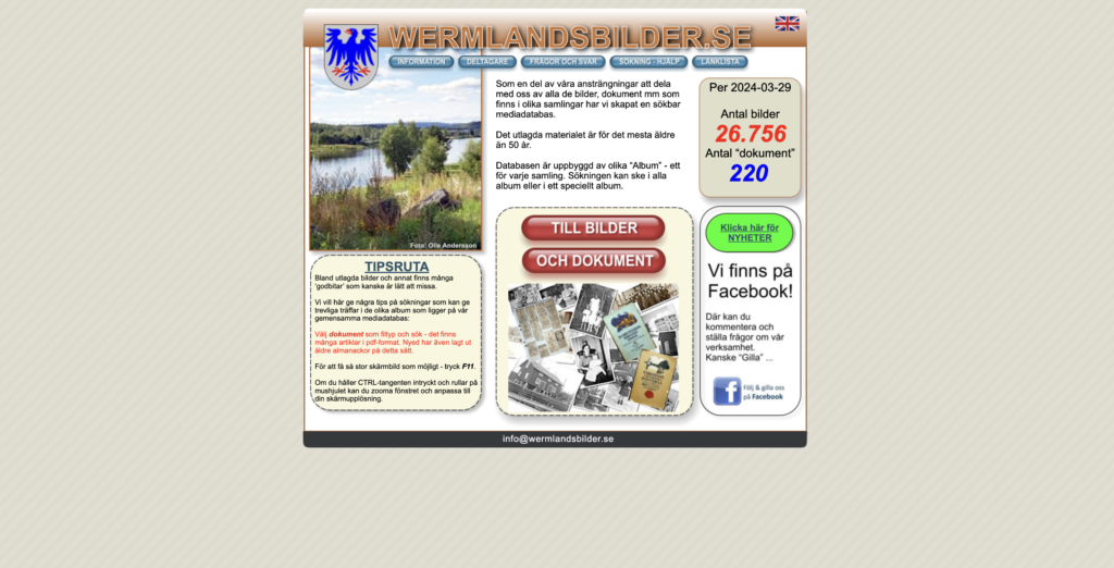 En regional bilddatabas som bevarar och tillgängliggör Värmlands visuella kulturarv. Bilderna är organiserade i en egen samling och har försetts med metadata såsom motivbeskrivning, plats och tidsangivelse. Genom detta samarbete säkerställs att Gillets historiska bildmaterial bevaras långsiktigt och kan delas digitalt med framtida generationer.